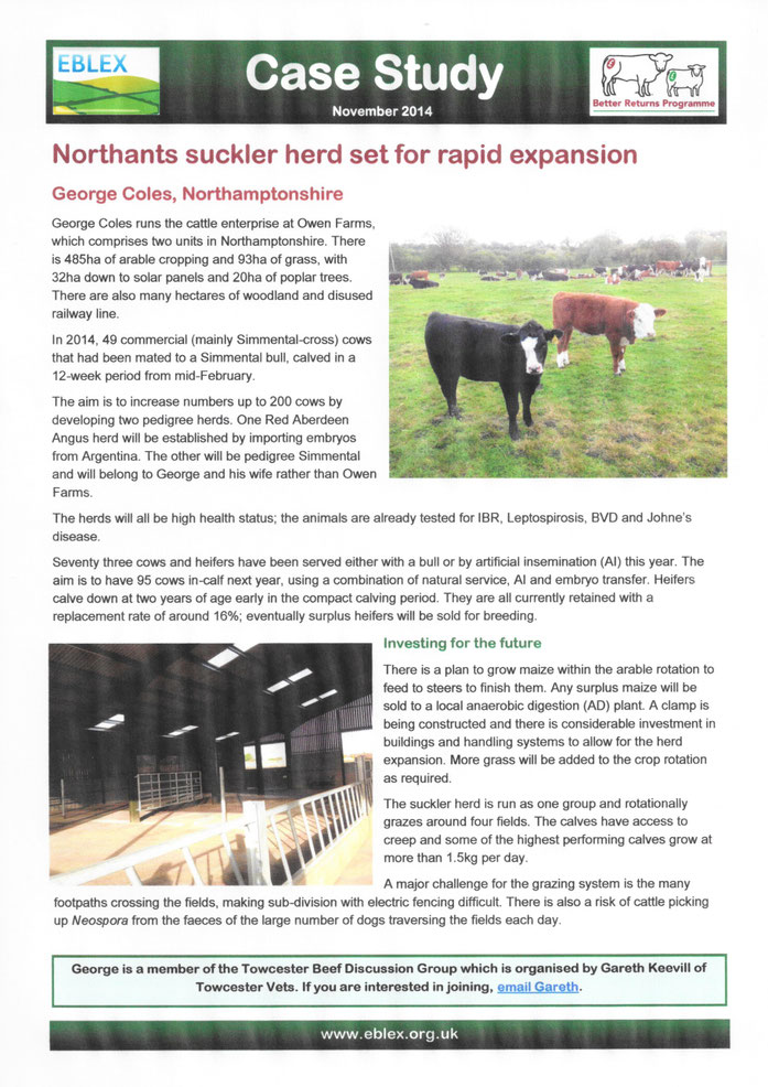 One of George's photos is being used to help promote Towcester Veterinary Centre's beef suckler contract (see small photo in top right hand corner of Ermentrude with her calf Florance taken in 2014).
