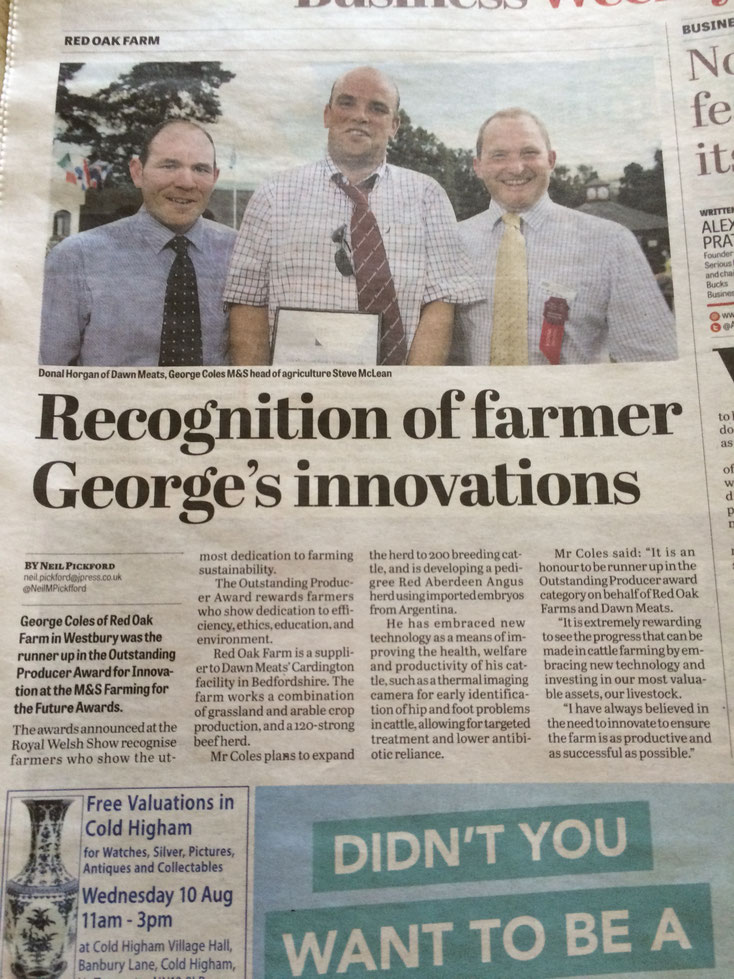 George has been nominated for the Innovation Award for his production of beef at Red Oak Farm, as part of Owen Farms Ltd, which he supplies to M&S through Dawn Meats.