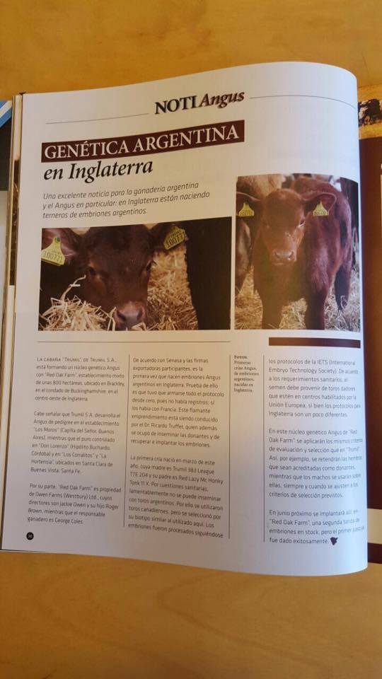 Article published about the pedigree Red Aberdeen Angus embryo program in Argentina.